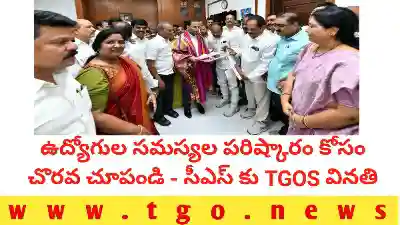 TGO NEWS (MAY 03) : TGOS meet Telangana CS today about employees issues. తెలంగాణ రాష్ట్రానికి నూతనంగా రాష్ట్ర ప్రభుత్వ ప్రధాన కార్యదర్శిగా నియామకమైన శ్రీ. రామకృష్ణారావు, IAS, గారిని కలిసి అభినందనలు తెలియచేయడం జరిగిందని టీజీవోస్ రాష్ట్ర అధ్యక్ష, ప్రధాన కార్యదర్శులు ఏలూరి శ్రీనివాస రావు మరియు ఏ. సత్యనారాయణ తెలిపారు.